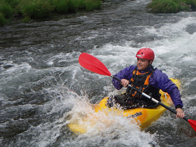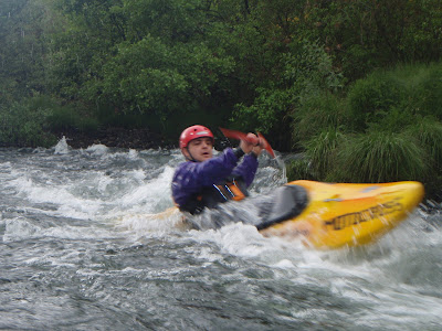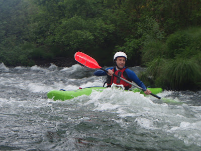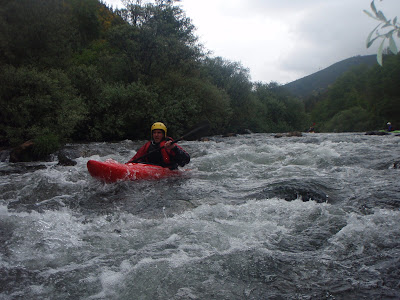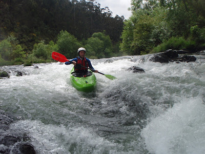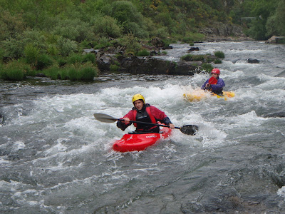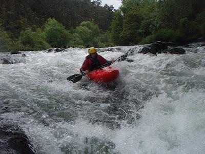 Neste primeiro dia de festival optamos por ajudar o nosso representante Bávaro - um pequeno pais abaixo da Alemanha -a concretizar um dos seus sonhos, ou seja remar um rio em Portugal. Devido a sermos muito poucos, e à experiência do Johannes não ser muita, apontamos baterias para um troço de classe III com dois rápidos mais marcantes quase a chegar ao Areinho. Para quem conheça este percurso, o rápido da Torre e o SuperBock estavam com um bom nivel de água devido às chuvas que tem caido em volta da serra da Freita. Nesta ultima passagem deu para ensaiar umas quantas linhas pois a logistica da organização ainda ia demorar a chegar à praia fluvial aonde está sediado o CCABP. O restante percurso é caracterizado por umas quantas acelarações e umas passagens com pequenos rolos e ondas. Um dia relaxante e a pensar em quem se está a iniciar. Claro que bebemos umas cervejas à pála de alguns banhos. Não tantos quanto queriamos mas já deu para matar a sede ...