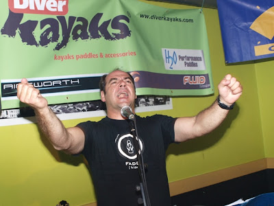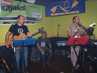 Jantarzada muito bem regada. Ninguém ficou indeferente ao excelente dia que todos apanhamos em três diferentes percursos do rio Paiva. Tanto os participantes no kayak extremo, competidores e publico, como os intervenientes nas descidas de turismo chegaram a este jantar de convívio com um sorriso nos lábios e vontade de continuar com a festa. Obviamente que o programa que se seguia, concerto dos crazy-kayakers Péréré, também era o mote para se apostar numas cervejas e vinhos a mais do que normalmente se bebe numa refeição tradicional. Excessos ? Nada disso. Tudo dentro da alegria e animação que se pretendia. Destaque para a entrega de prémios tanto da Prova do Paiva como do Circuito Nacional de Kayak Extremo.