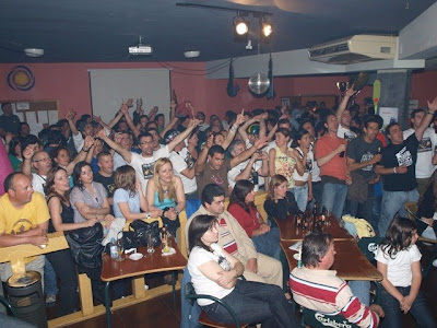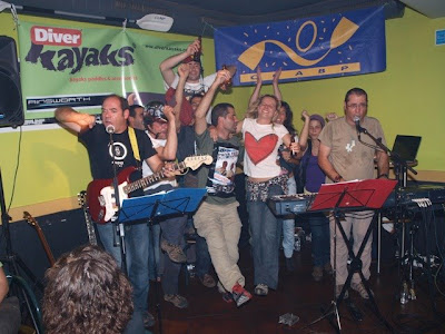 Loucura num bar de Arouca chamado Assembleia Bar. Quem por ali passou viu e sentiu que a familia kayaker portuguesa, com italianos, galegos e alemão à mistura, é cinco estrelas. Uma noite inesquecivel. Desde o Minho até ao Alentejo, Portugal encontrava-se muito bem representado. Todos para além de sabermos remar também sabemos cantar e dançar :)