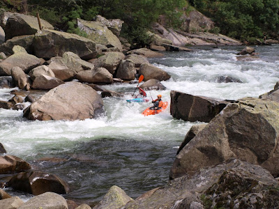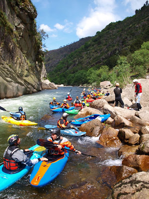 Papelada em ordem, uma conversa com a comandante de Arouca e lá fomos nós para o nosso habitat favorito. A prova foi dividida em dois módulos distintos. O primeiro, um contra relógio em classe III+, partia do Serra Cales com destino à uma contra do lado esquerdo antes do Rápido Grande. Os melhores 16 tempos seguiam em frente e disputavam entre si o resto da prova.