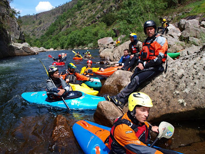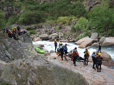 Assim foi, enquanto a malta do turismo navegava desde Meitriz até ao Areinho sob o comando do Diogo Lima e da Teresa Rodrigues, o pessoal mais experiente rumou ao Vau a partir do Areinho. Antes disso alguns contratempos fizeram-nos perder mais tempo do que o desejado. A somar a um raft sem condições de ir para a água, rapidamente substituído por outro, aconteceu o infelizmente já previsto pela organização, ou seja tivemos a companhia de uns agentes da GNR que tiveram de averiguar uma denúncia feita contra nós. Nada a apontar aos homens desta força policial, nós tínhamos tudo conforme manda a lei visto termos estado em contacto com a ASAE. Tudo a apontar aos tristes que se escondem atrás de um anonimato e não são capazes de ser frontais. O nosso lema é união. Já o demonstramos várias vezes com ajuda aos eventos de outros organismos, com a passagem de experiência e informação, com a criação de equipas de resgate para ajudar, …, enfim é triste !!!